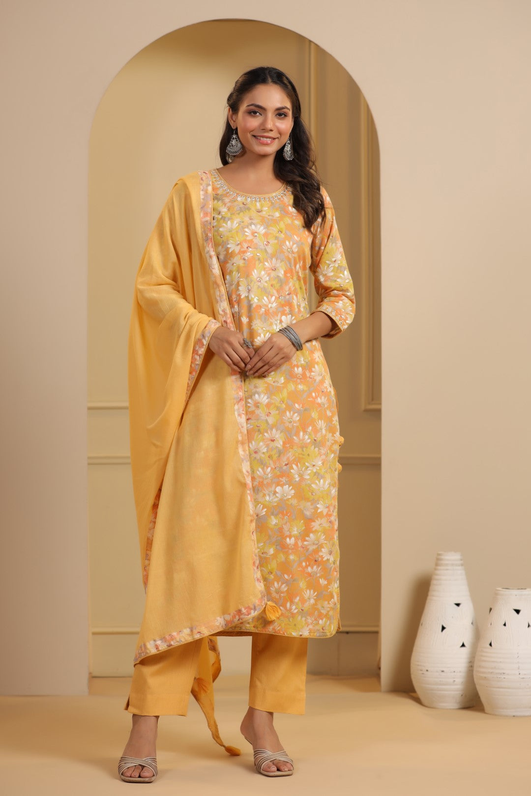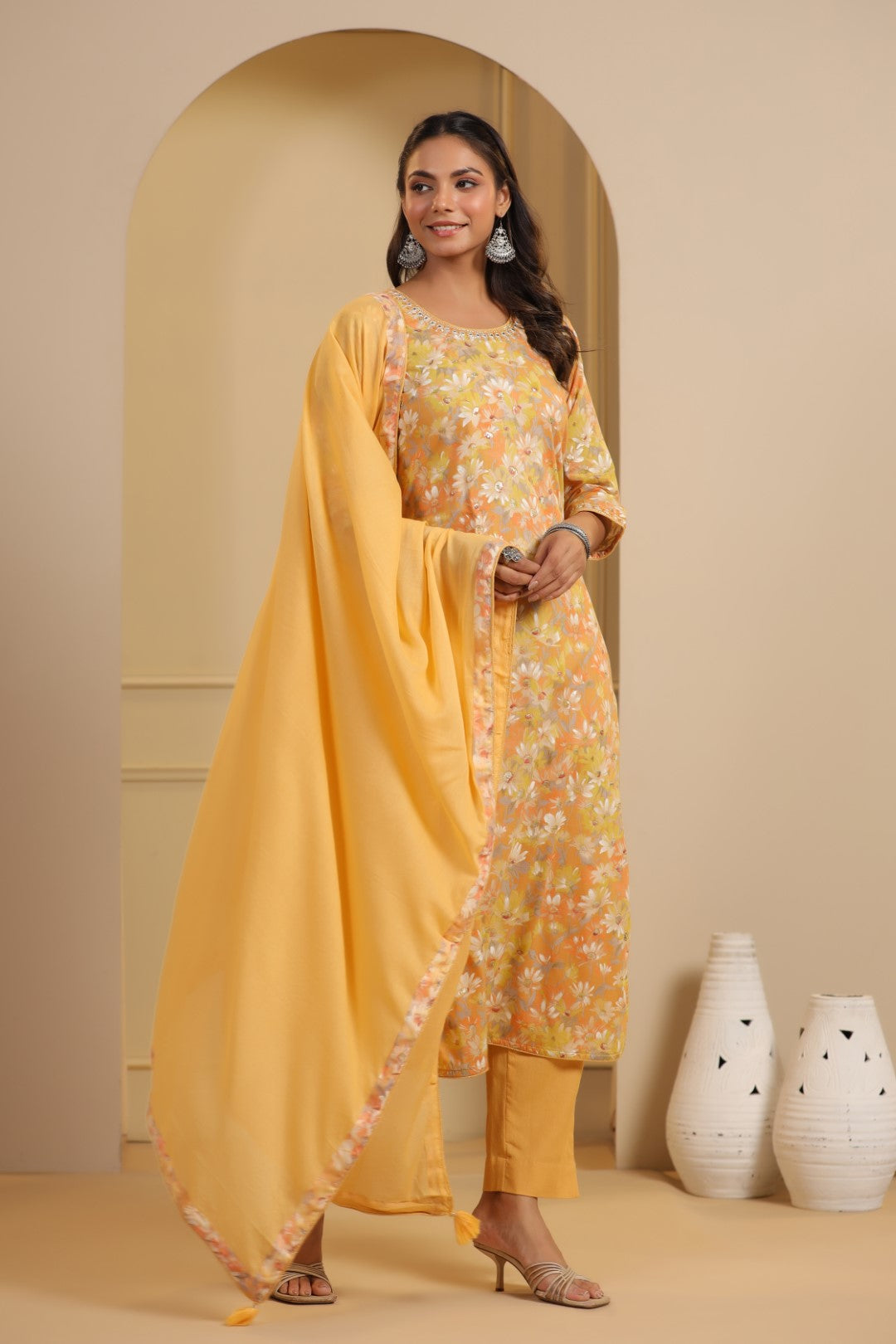 Emroided Pakistani Lawn Kurta Dupatta Pant Set