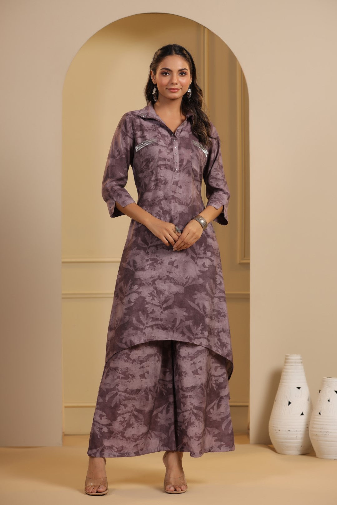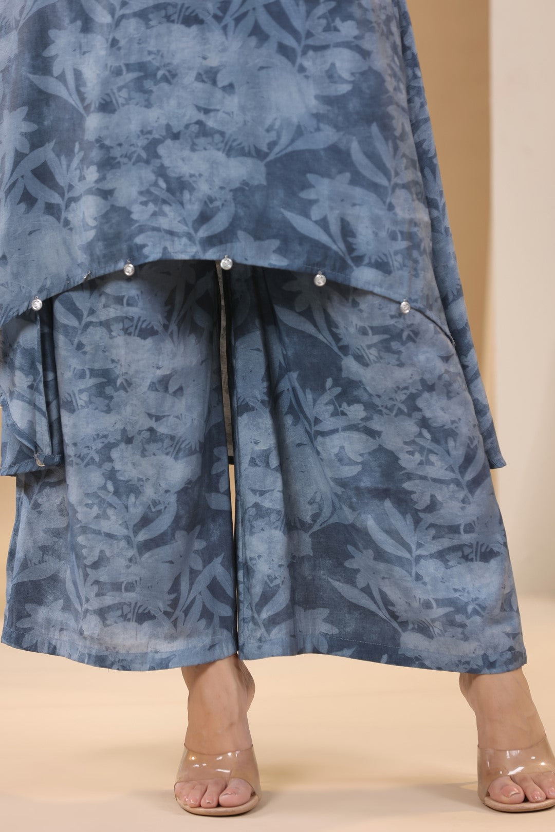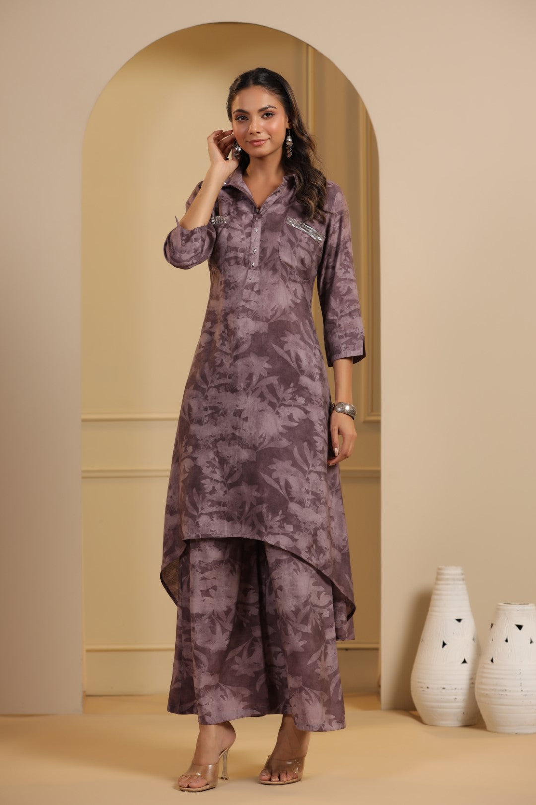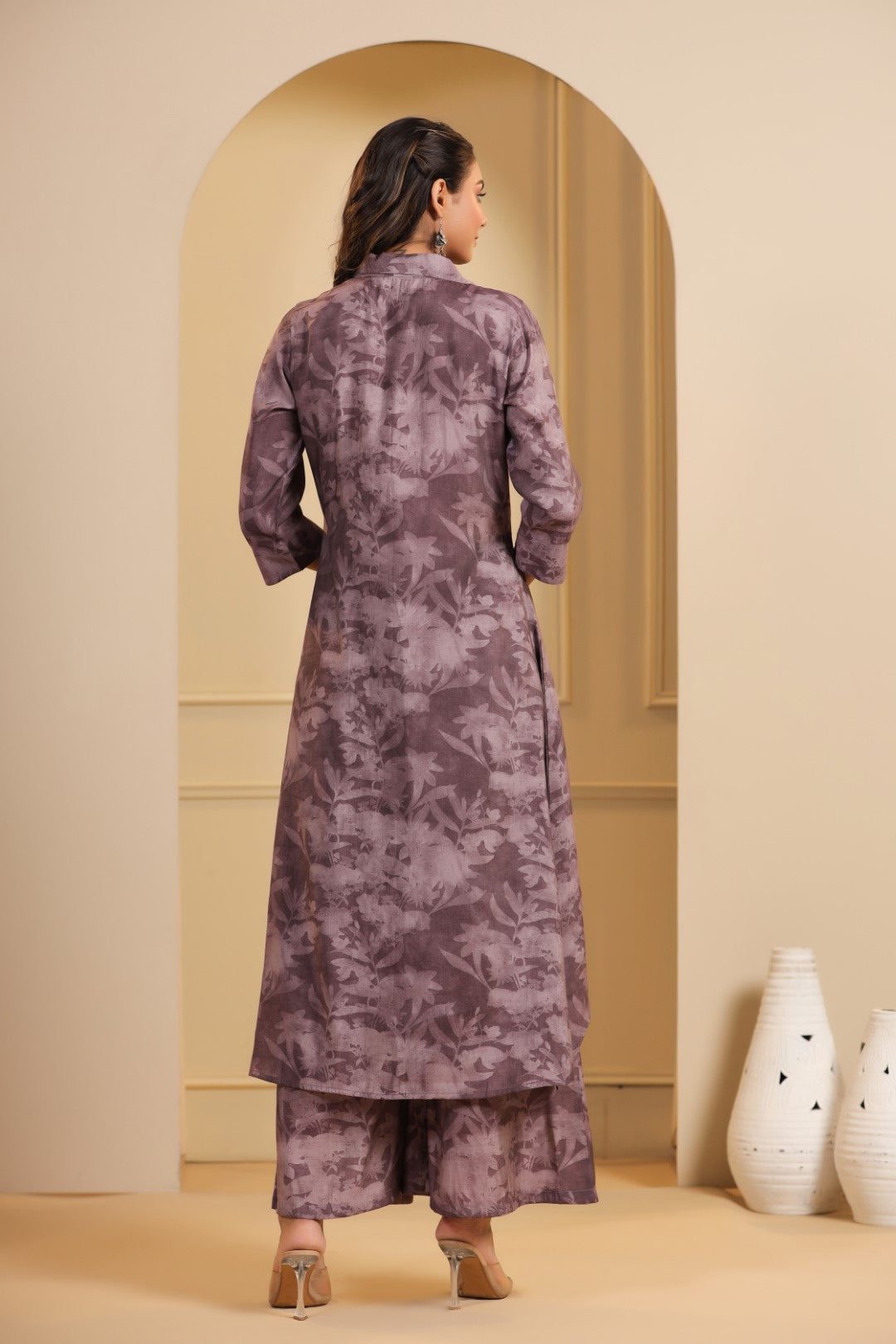 Beautiful Modal Co-Ord Set Floral Print Collar Shirt With Katdana on Yoke, Pockets and Collar